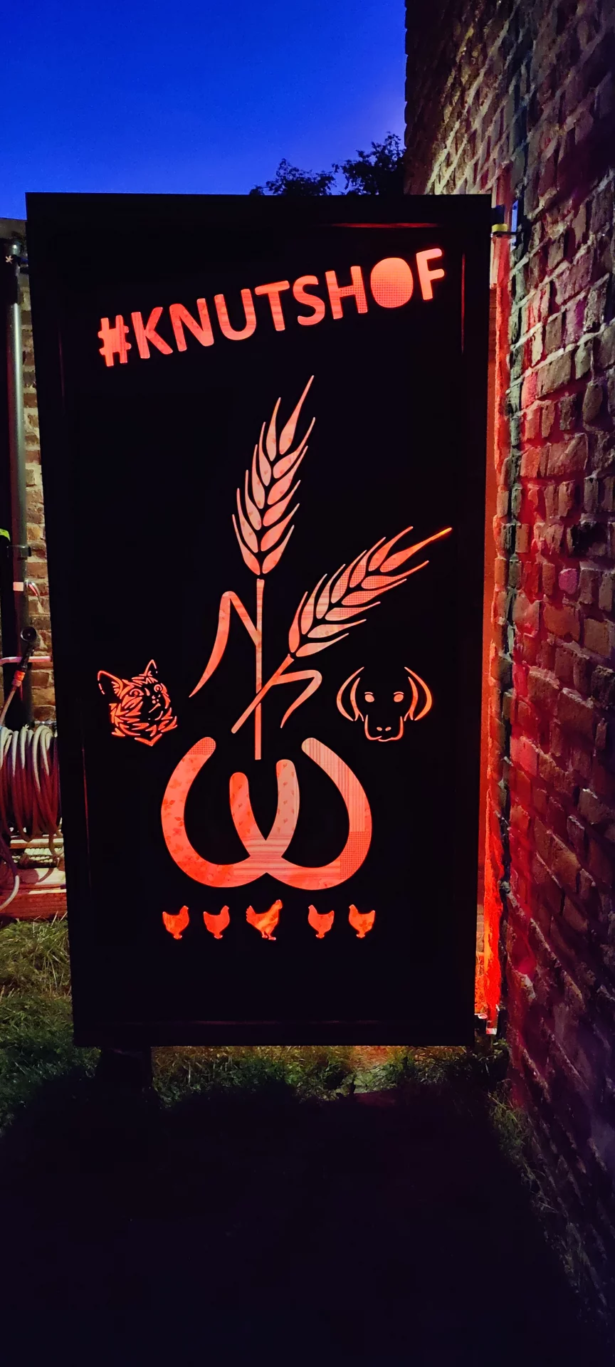 Kurz vor dem Kauf, hatte ich die Vision, den Hof Knutshof zu taufen. Dies, weil wir schon vorher Events mit Freunden gemacht haben, die wir "Burning Knut" genannt haben. Wegen IKEA, Weihnachtsbäume, Verbrennen, ... Längere Geschichte.